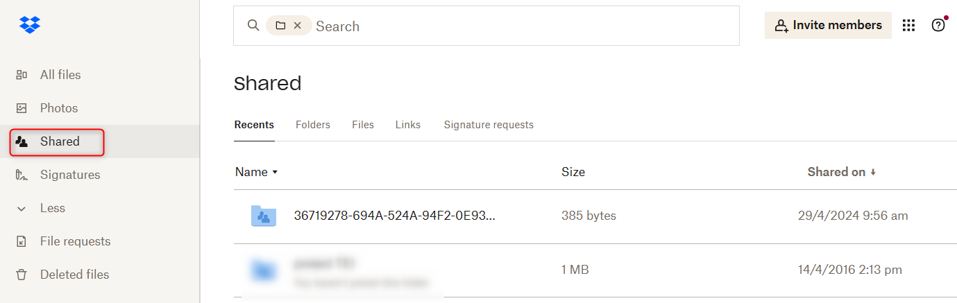Tip: See all the projects shared with other associates by checking the Shared menu in Dropbox: