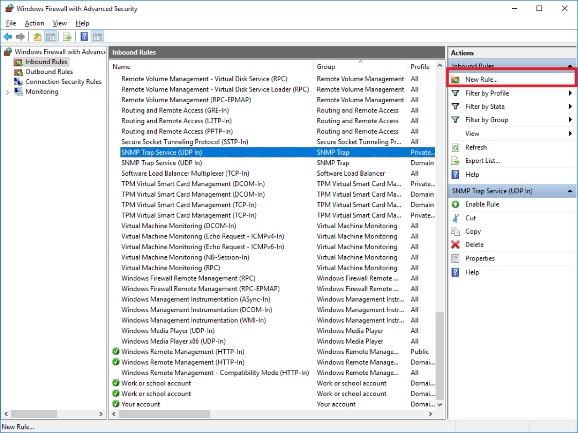 Open the Windows Firewall with Advanced Security and create a new firewall rule, as shown in the image below.