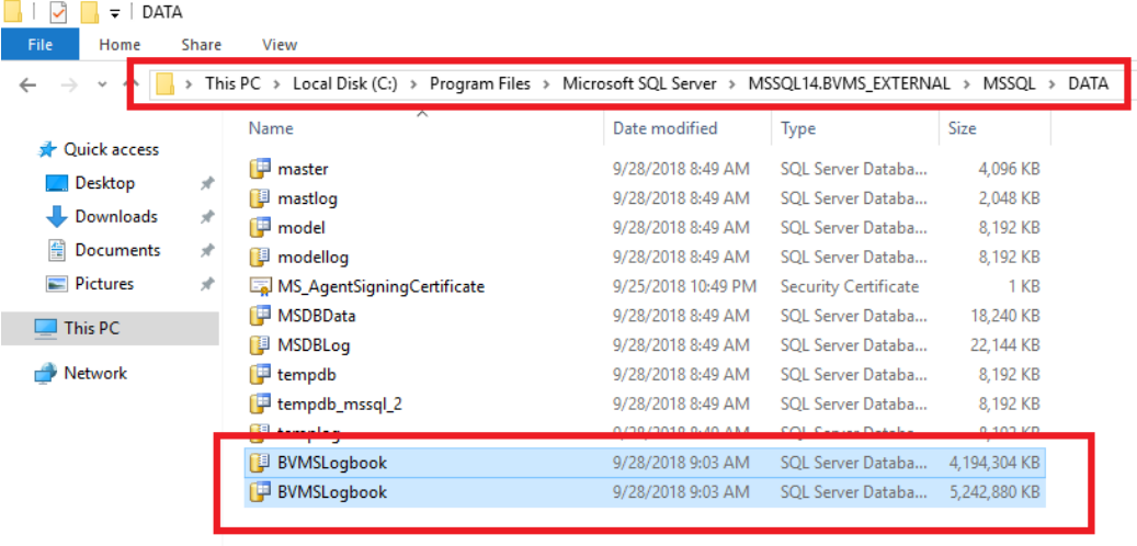 The folder name MSSQL.14.BVMS_External will depend on the instance name chosen during the SQL Server installation.