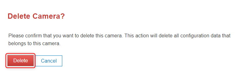 7. Click on the X button next to the camera you want to remove and confirm your action by clicking Delete button: