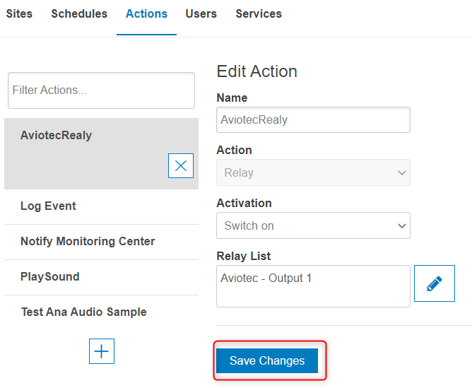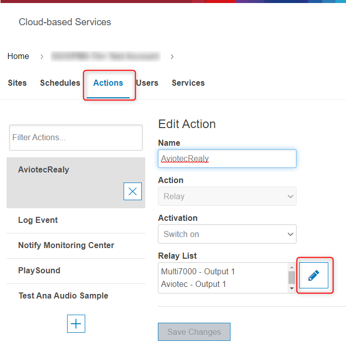 3. Next, go in the Actions menu. If your camera is in one of the Actions lists, click on the Edit pen button next to it: