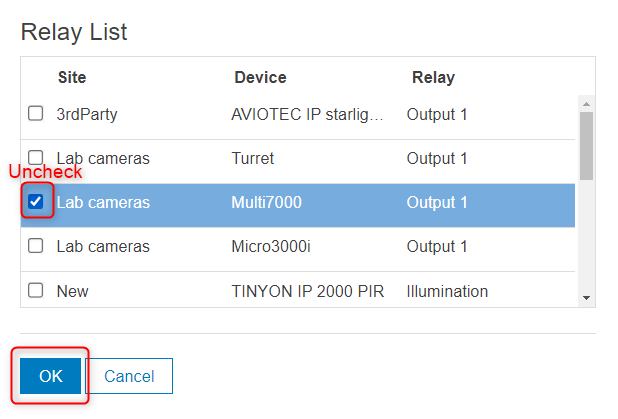 4. Uncheck the box next to your camera and click OK and Save Changes