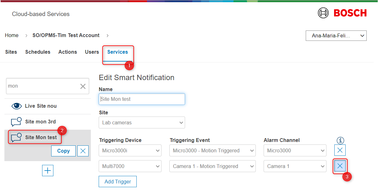 - The camera is used in a Service (as Trigger or as Alarm Channel)