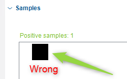 Also, while creating samples and clicking the Learn button, the "learned" images are incorrect and don't match.