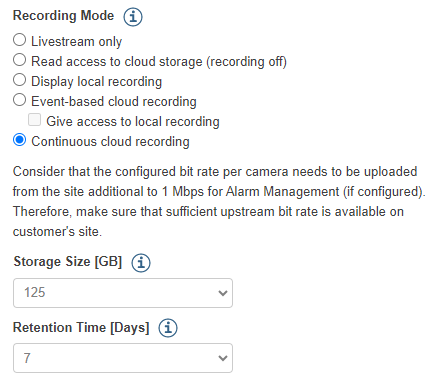 In this mode, the cameras will continuously stream to the Cloud and these are recorded into the cloud storage. Hence, it is important that the available bandwidth available at site is sufficient to handle the upstream from all these cameras.