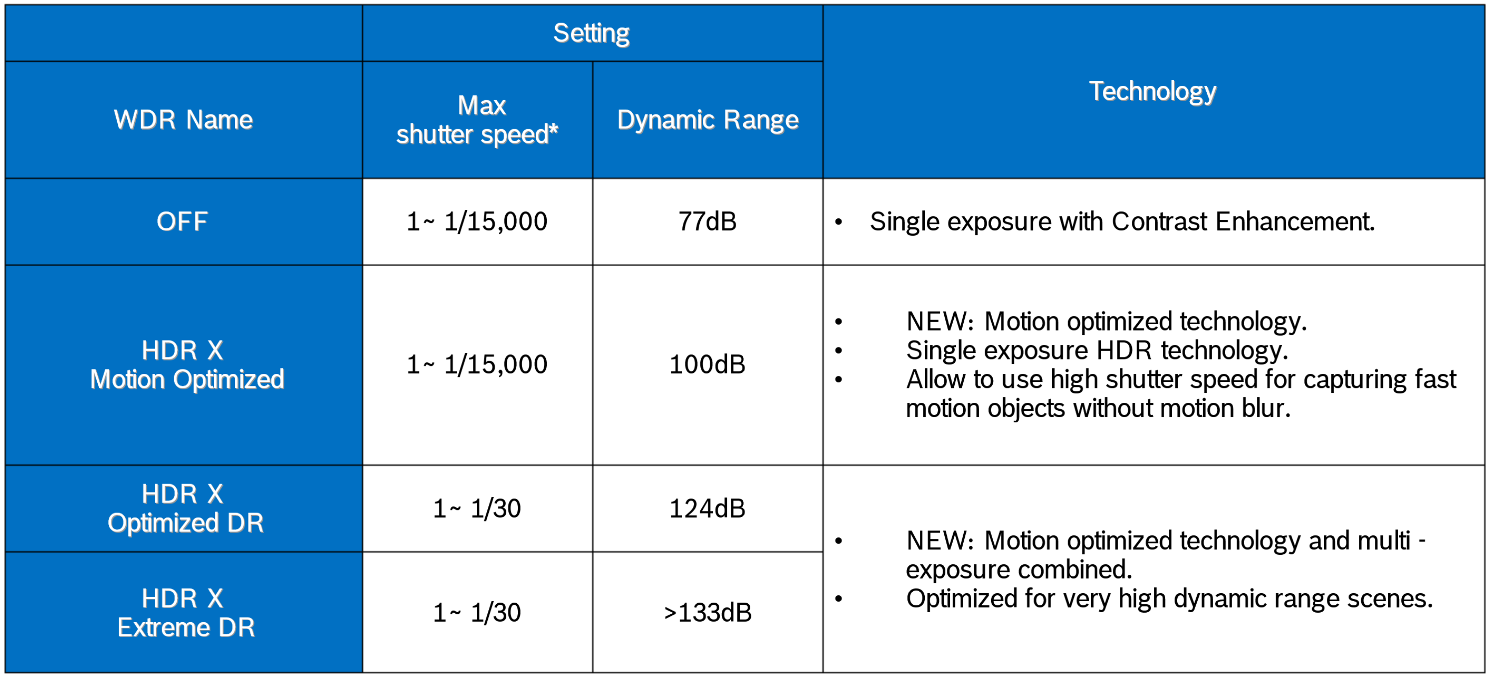 Difference between WDR - HDR - HDRX