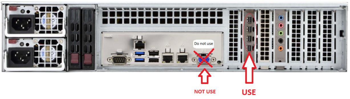 The Bosch DIVAR IP 7000 is equipped with an add-on video card. At some point at startup the Bios will switch the video output to the add-on video card. The onboard video will always show the System Initializing 91 when the server is booted up. There is also a sticker saying “ DO NOT USE” on the VGAOutput.