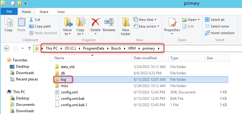 - Go to C:\Program Data\Bosch\VRM\primary on the VRM server.
