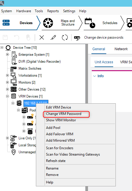 - If you had a password configured for VRM, then the VRM device will show up with a red padlock in Config Client. In this case, you will need to edit the password in Config Client.