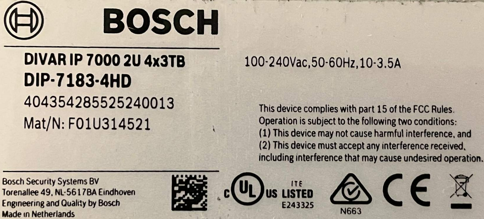 The label on the DIVAR IP will show which model you have as well as the serial number.
