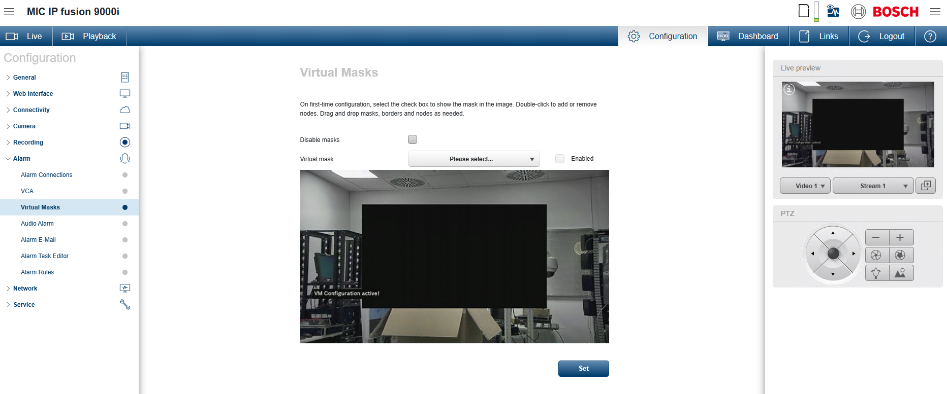 - An issue is fixed where the virtual mask configuration on moving cameras was not closed when switching from configuration to live, rendering the virtual masks solid.