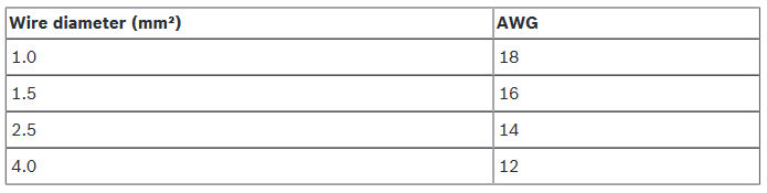 Metric wire sizes are standard DIN sizes, ISO6722, mm².