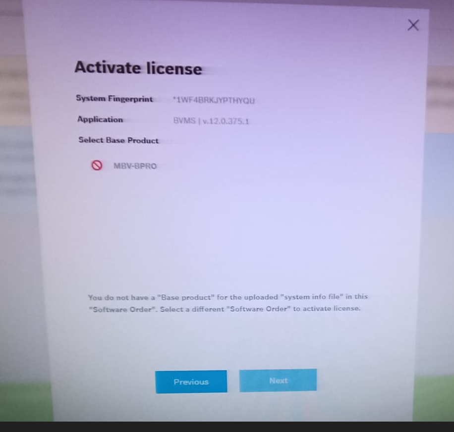 When attempting to activate a BVMS license (e.g., MBV-BPRO) through the Bosch Remote Portal, the following error message may appear: