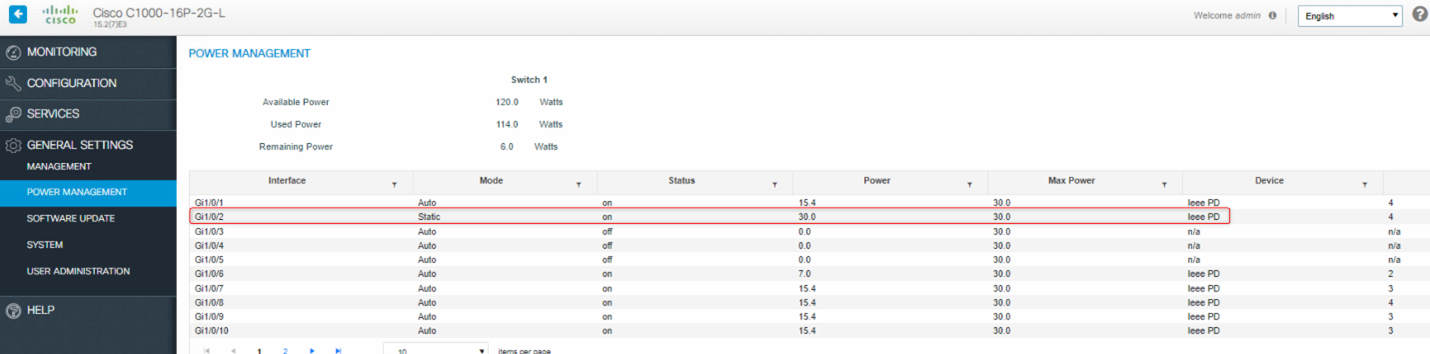 - Once this is set, you can switch back to auto mode, and you will see that the port gets 30w assigned.