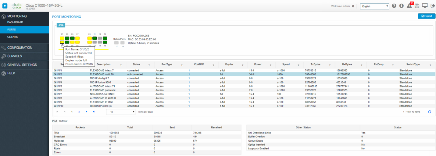 - FLEXIDOME multi 7000i, the PoE switch condition as