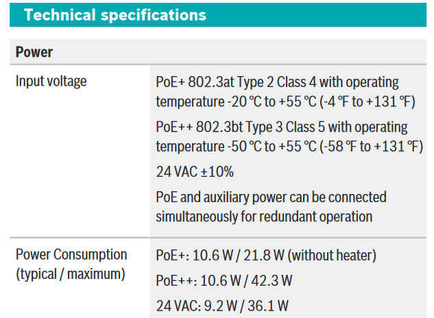 - Heater on and IR on (working range -50C~55C), 802.3bt Type 3, class 5 standard (60W PSE)