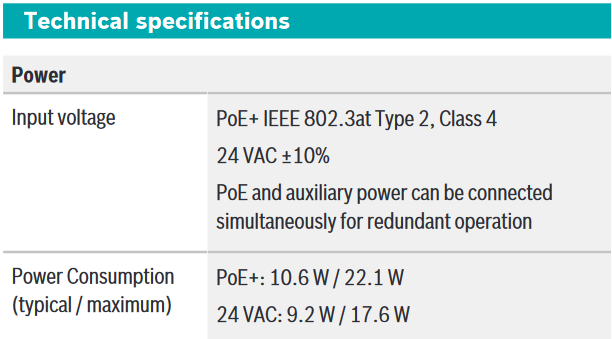 - FLEXIDOME multi 7000i operates normally with all IEEE 802.3at Type 2, Class 4 midspans.