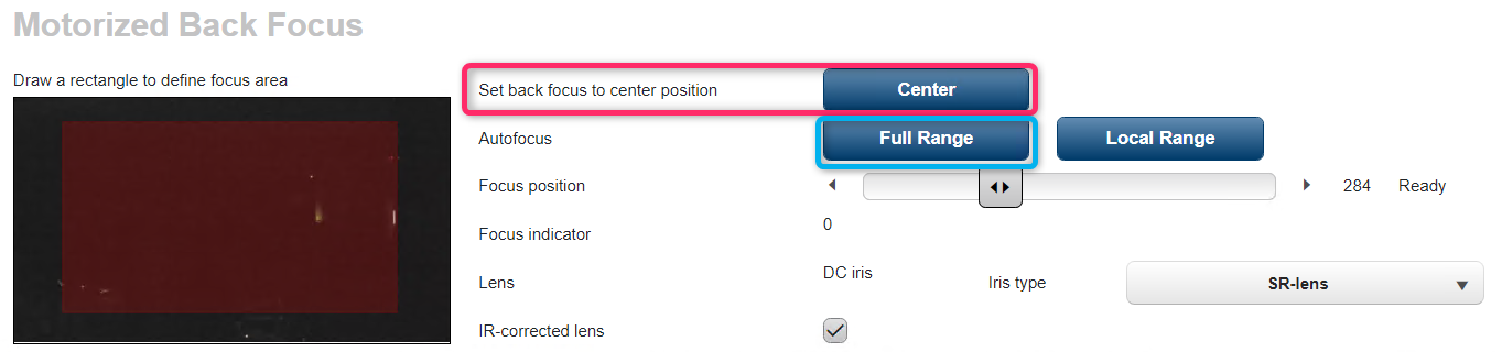- Finally, press ‘Full Range’ to allow the camera to auto focus for the optimum image focus.