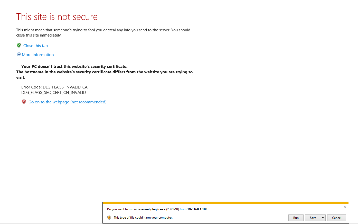 Be aware that after installing the WebPlugin Setup, you will be redirected again to the webplugin.exe link to be downloaded. Select the "webplugin.exe" and remove it from the URL.