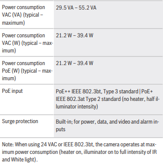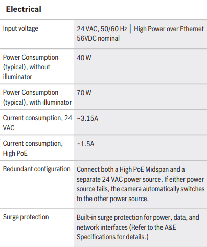 *For models with attached illuminators, use the 95 W midspan sold by Bosch. For models without illuminators, use the 60 W midspan sold by Bosch, or a midspan that is compliant to the IEEE 802.3at, class 4 standard