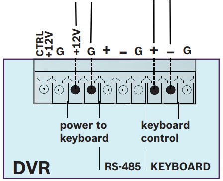 - Attach the stripped wires to the keyboard connector on the back of the DVR according to the illustration below.