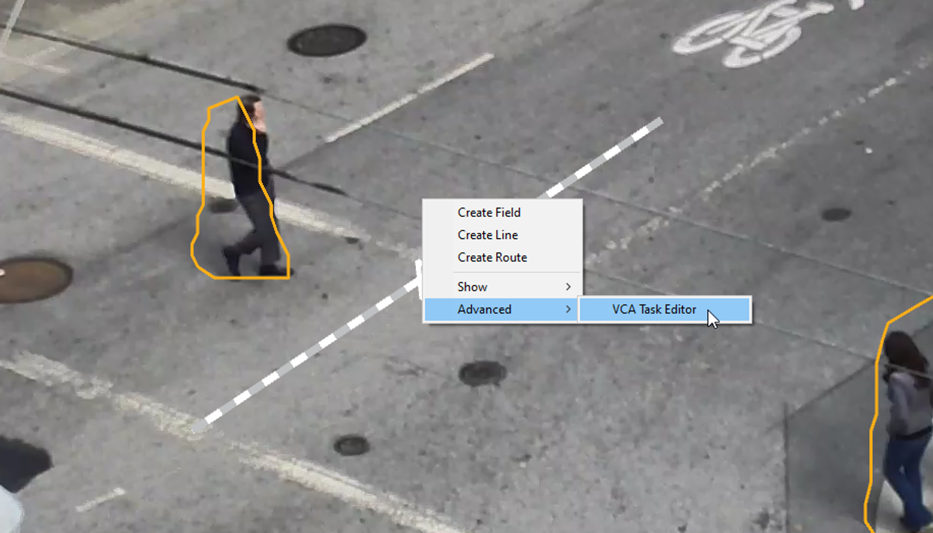 - Right click anywhere on the image and go to Advanced -> VCA Task Editor