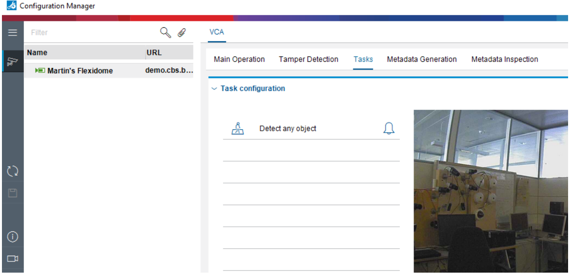 - For remote VCA configuration of Remote Portal cameras, please start the Bosch Configuration Manager on your computer and connect to your Remote Portal account to configure your cameras.
