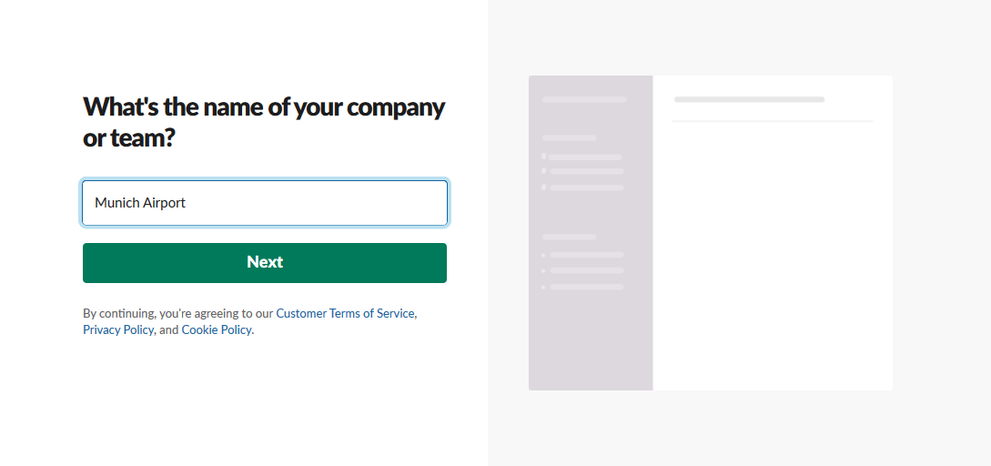Create a Slack account and create a new workspace.
