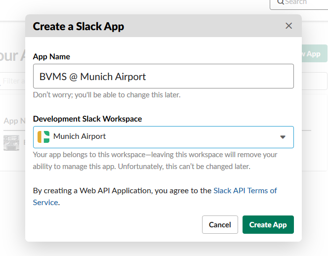 Browse to https://api.slack.com/apps and create a new app.