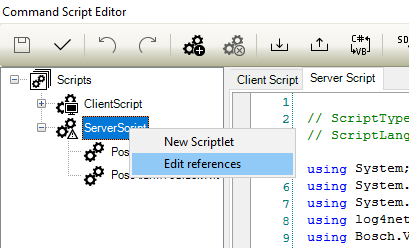 Add references to script editor to communicate with web applications. The System.Net.dll reference needs to be added for the client and server script.