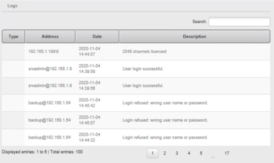 - Logs of the system: here you can see the list of warnings or errors in case of malfunctions.