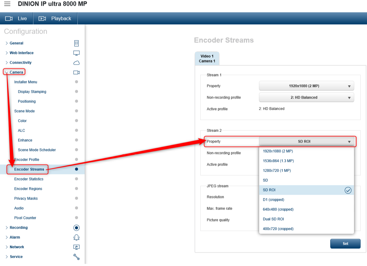 To be able to activate the View Control panel for Electronic Pan, Tilt and Zoom, you need to set stream 2 encoder stream for Region of Interest (ROI).