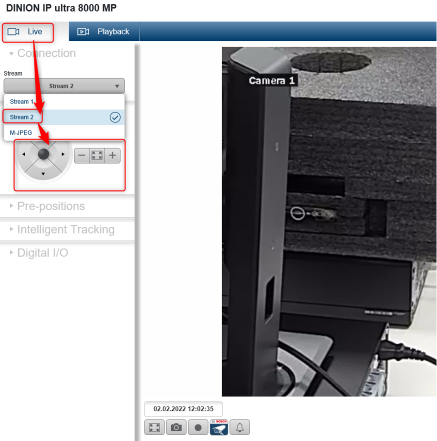 Afterwards, you will have to go to the Live page and switch to Stream 2. This way, you will have access to the View Control panel for Electronic Pan, Tilt and Zoom.