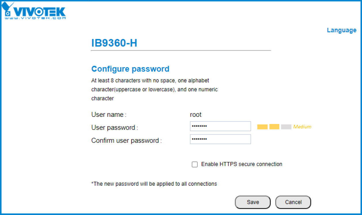 2. When you have opened the camera’s web interface, you need to activate it first by setting up a password: