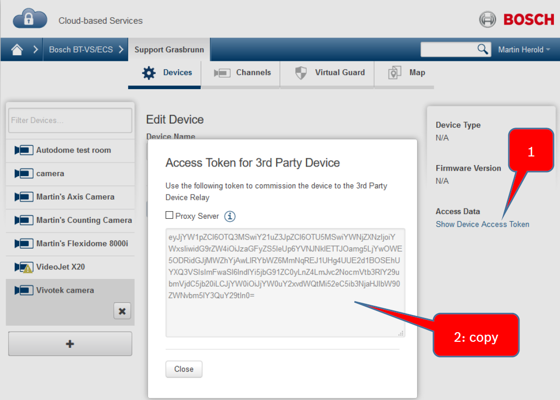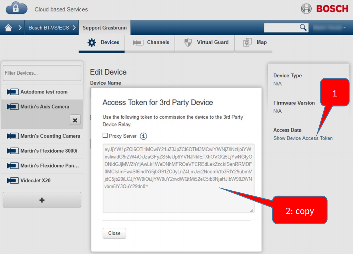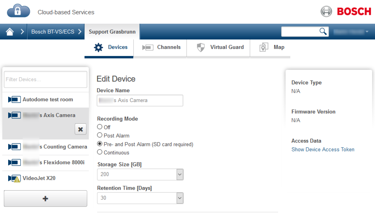 For these Axis cameras, the VX Cloud Agent app needs to be installed in the camera to establish the connection to Bosch Alarm Management. The Access Token authenticates the connection from the camera to Alarm Management.