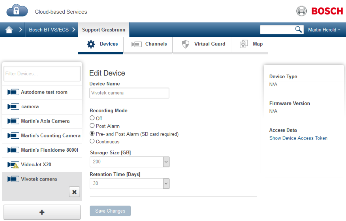 For Vivotek Schubert cameras, the VX Cloud Agent app needs to be installed in the camera to establish the connection to Bosch Alarm Management. The Access Token authenticates the connection from the camera to Bosch Alarm Management.