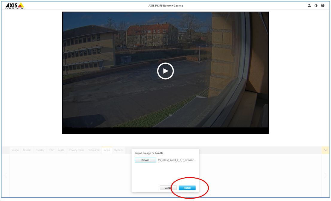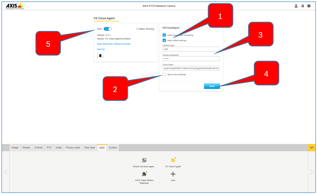 9. In Axis camera Settings > Apps > VX Cloud Agent app