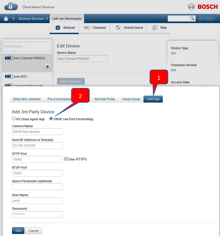 How to add 3rd party cameras to Bosch Alarm Management?