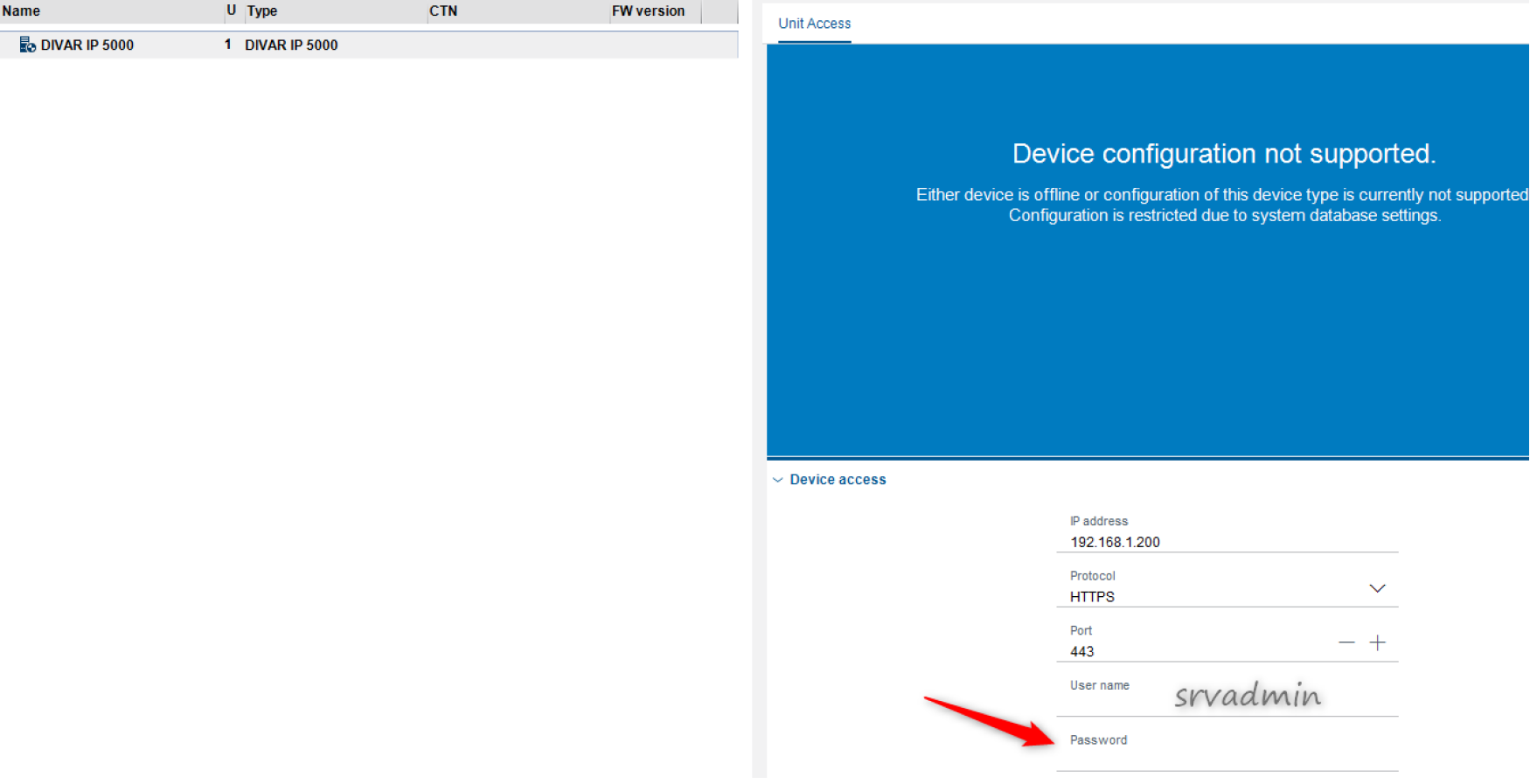 3. Type in the IP address of the unit > Select Group: Divar > Select Variant: Divar IP 5000