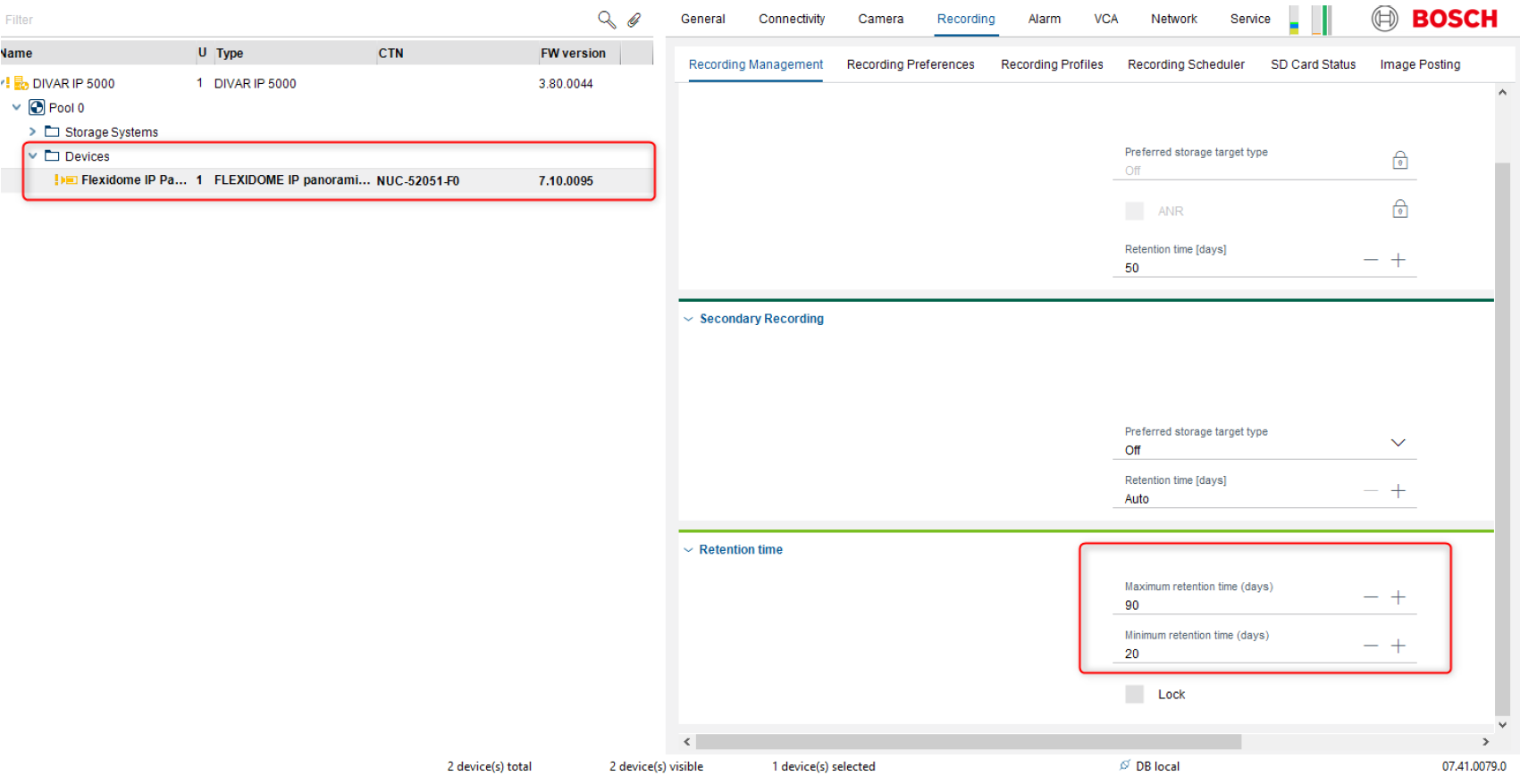 How to add DIVAR IP 5000 EZ in My devices (Configuration Manager) and configure max & min retention time?
