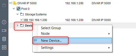 Note: In case you have more cameras and they are not added to the Pool in Configuration Manager, you can add them by expanding the Pool icon > go to Devices > right click on it > select New Device... > Add the camera's IP address > OK and authenticate on it with its credentials