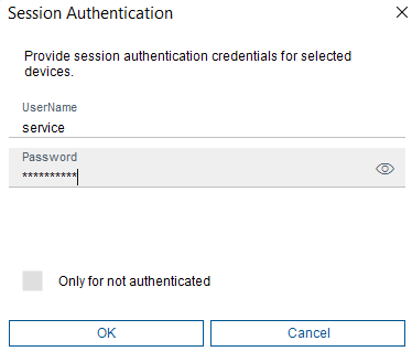 4. Set Session authentication > srvadmin / <password>