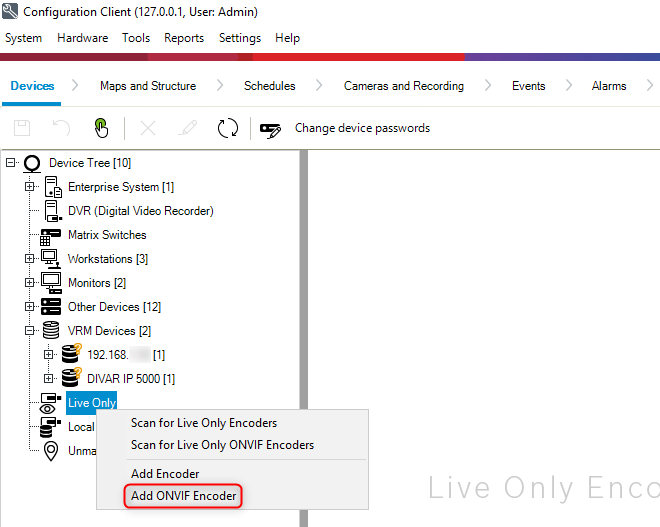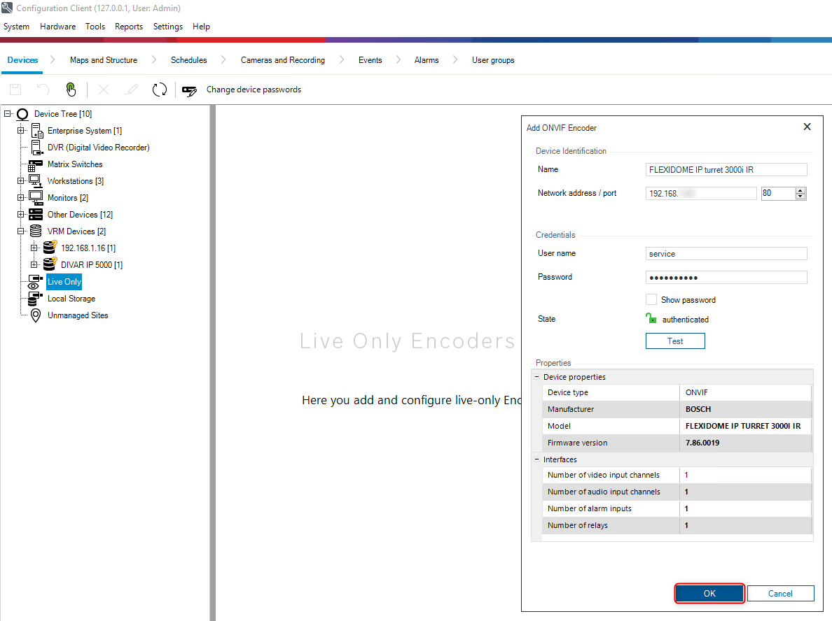 How to add ONVIF camera in Bosch Video Management System (BVMS): Live only?