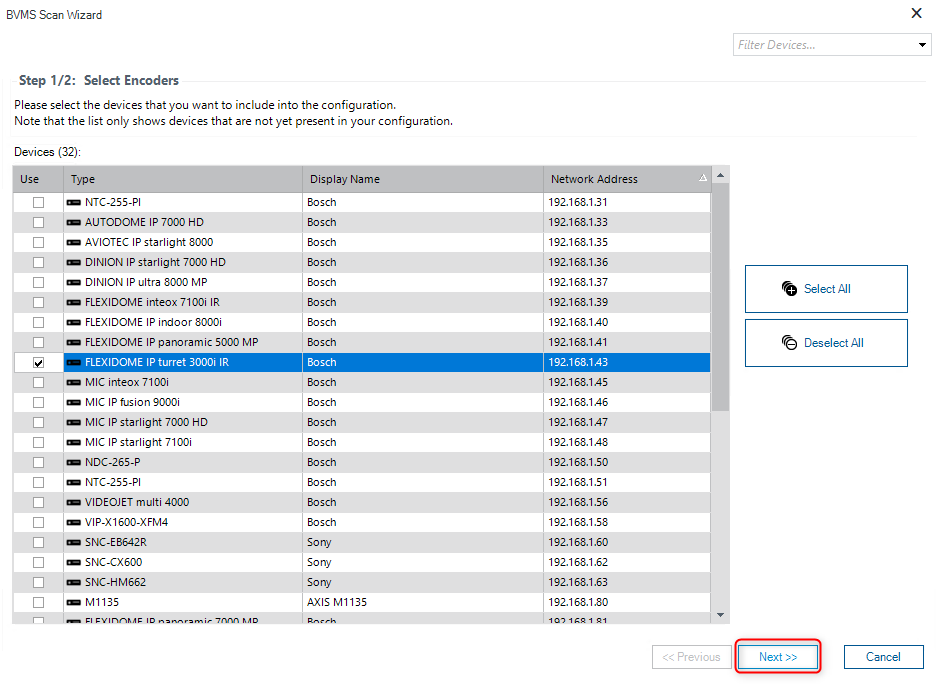 Select your device that you want to include into the configuration > Next
