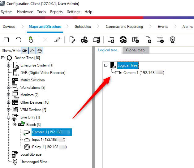 Your camera is now added to the Configuration Client