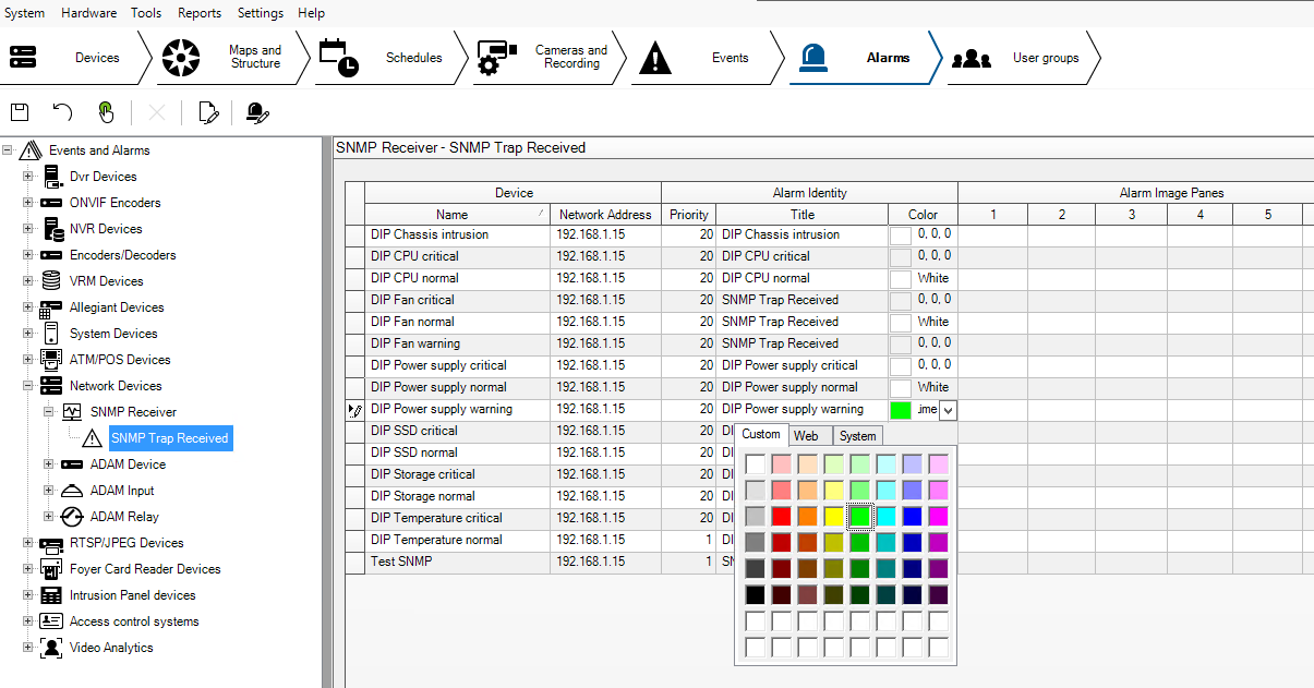 4. Now, we know that the traps are received fine. Next step is to configure the Events and Alarms.