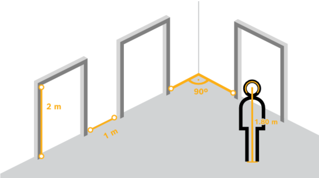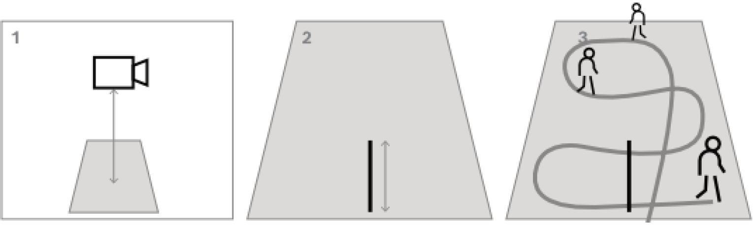 For top-down or birds eye view, it helps to have two orthogonal ground distances prepared, as well as two examples of a person walking through the scene, one in the middle of the camera image, and one further to the border. Though note that panoramic cameras are not supported with this calibration, there just measure the height and input it manually.