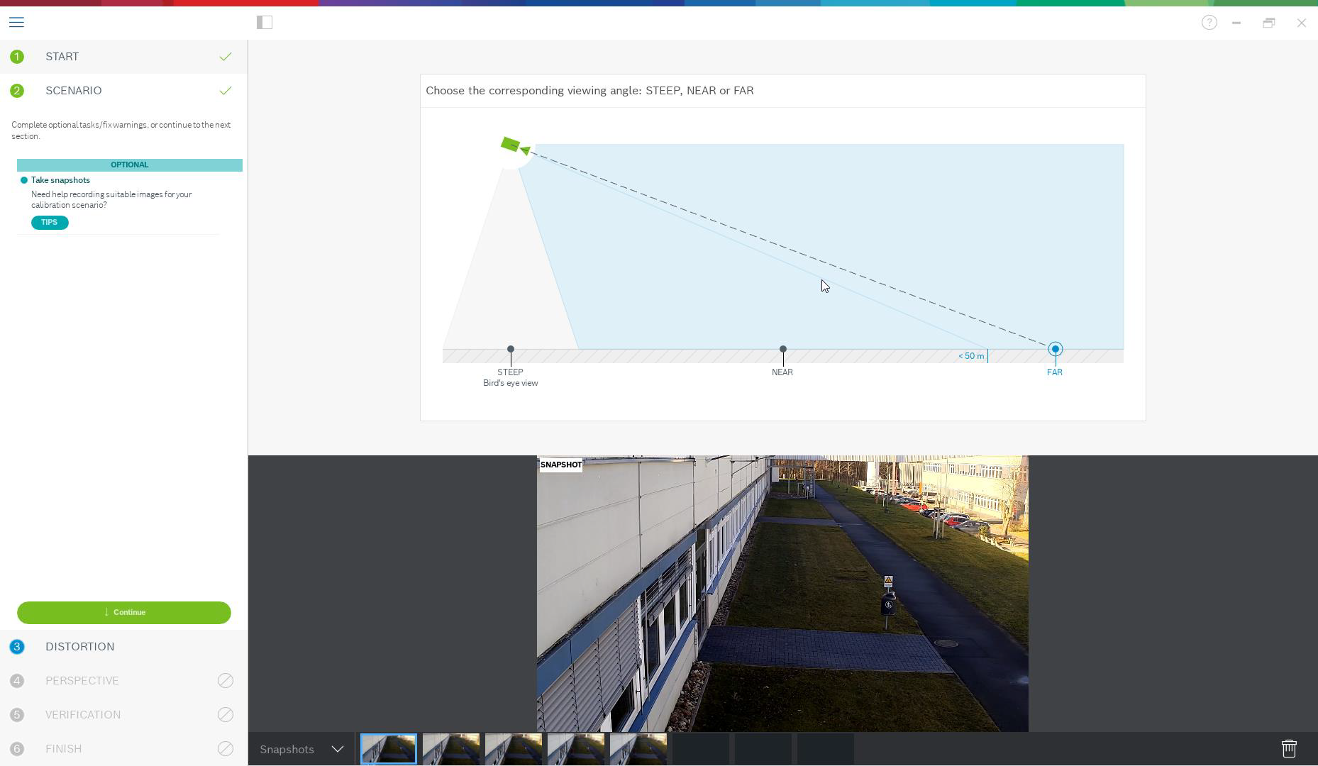- Far range beyond 50m. Here, the accuracy of the internal roll and tilt sensors is often not sufficient, and calibration needs to be done manually via measurements from the scene.