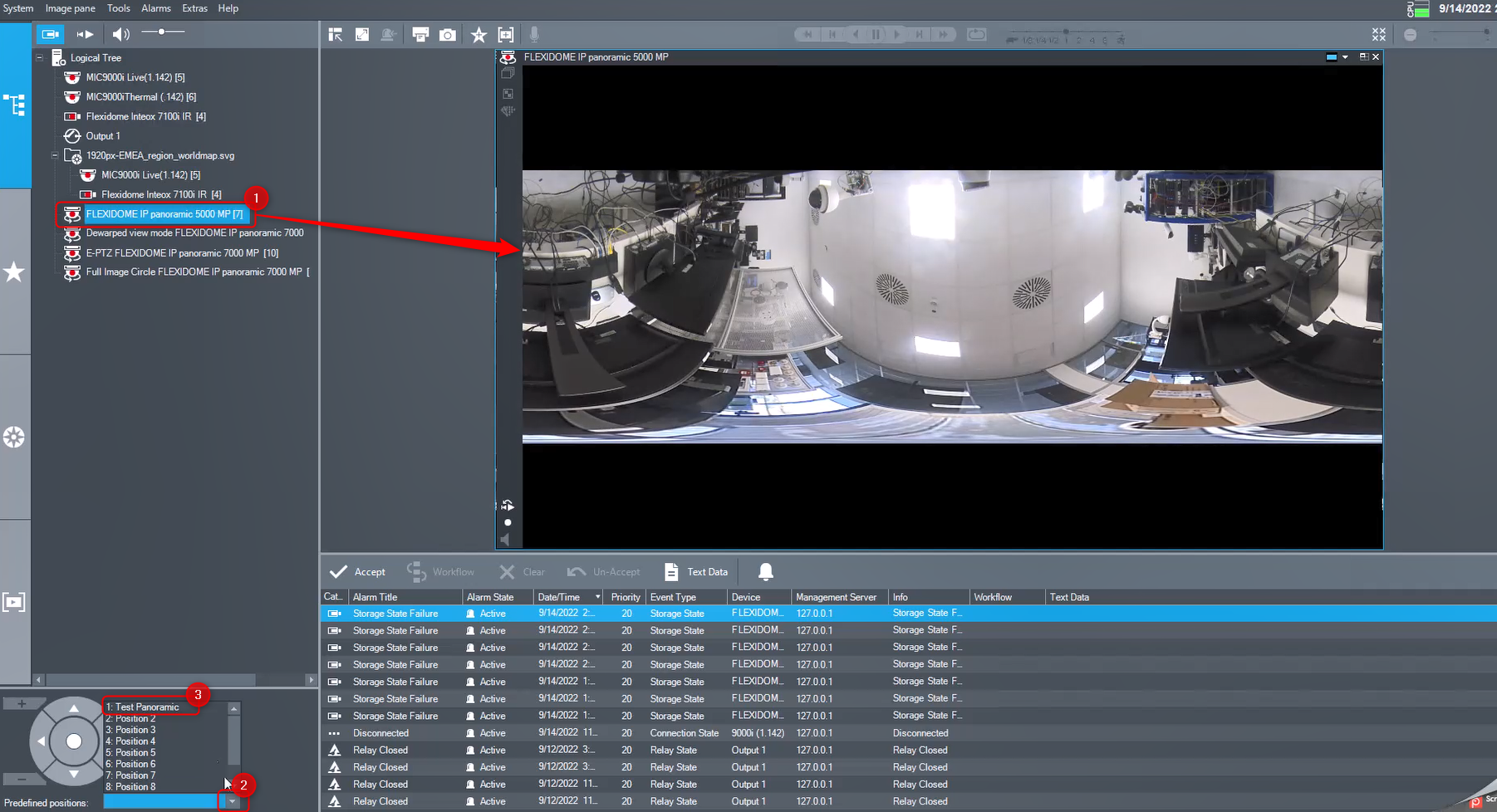 1. Configure the pre-position on the FLEXIDOME IP panoramic 5000 camera