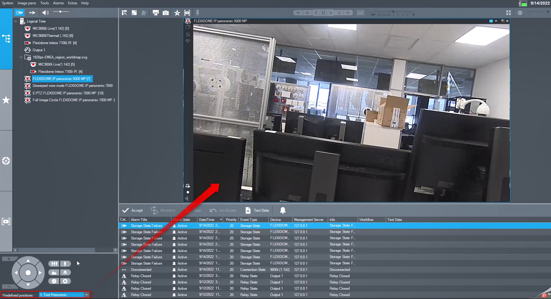 5. Open Operator Client and drag & drop your camera in the Image pane. Then, select the preposition from the drop-down list, next to the Predefined positions option.